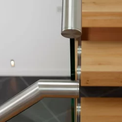 The staircase itself is cleverly made and perfectly exemplifies why cantilever staircases are sometimes called ‘floating stairs.’ The bottom flight to the rest level is made of treads attached to a glass stringer on either side, whilst the upper flight stringer is concealed within the wall finishes.