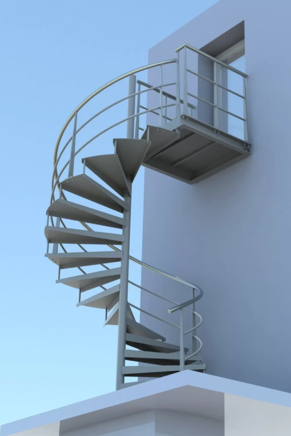 These external spiral staircases were made from galvanised mild steel and powder coated in anthracite grey.
