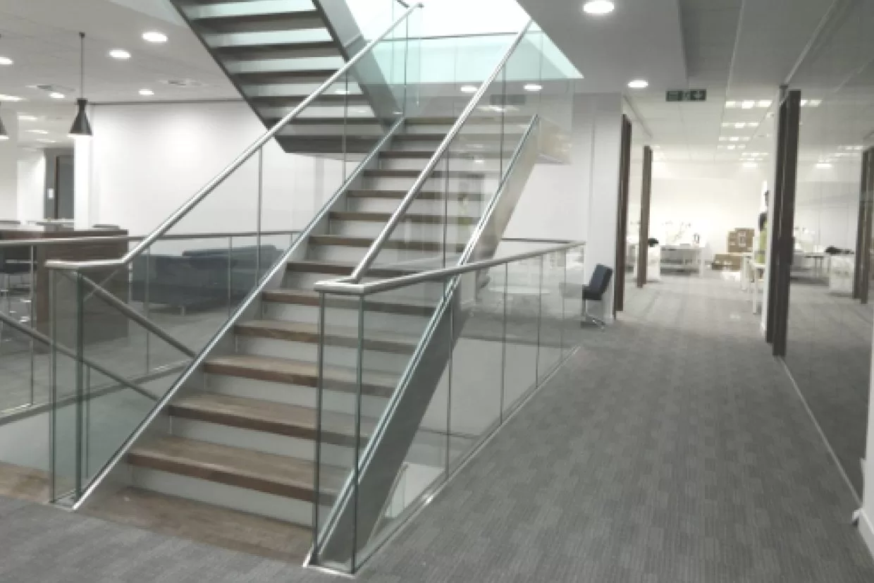 Area were looking for a contemporary staircase to reflect the open, inspiring work areas they had designed to encourage communication and collaboration. The office staircase design blended effectively, with the light airy office spaces that surrounded it, due to the clever use of glass with touches of steel and timber.